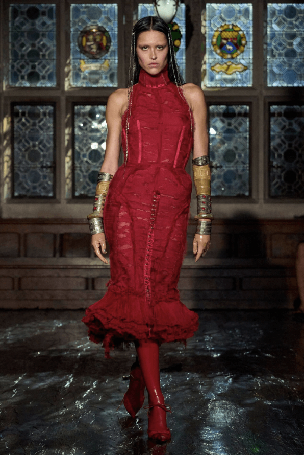 We all have a version of that creek – a hidden ghost of our former selves, entrapped within the blissful ignorance of a time prior to knowing what we know now. Dilara Findikoglu’s SS26 Runway, Cage of Innocence, is an exploration of the treacherous plight back to that place.
