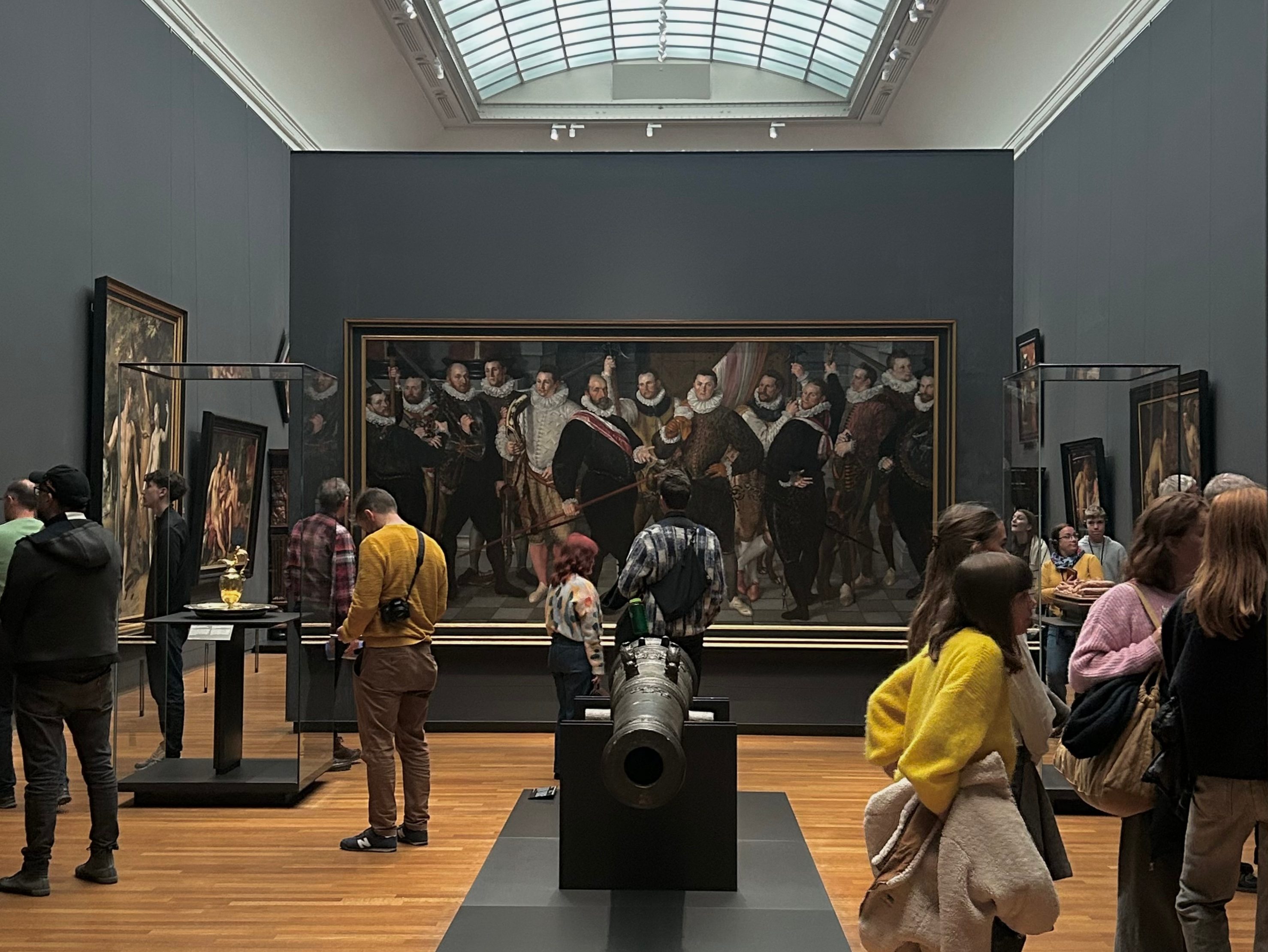Rembrandt’s light draped over tram lines. Renaissance-period canals accompanied cars and coffee cups printed with two dots and crosses, and Van Gogh’s Sunflowers (1888) reappeared on tote bags slung over passing shoulders. Everything endured at once, and everything kept moving.